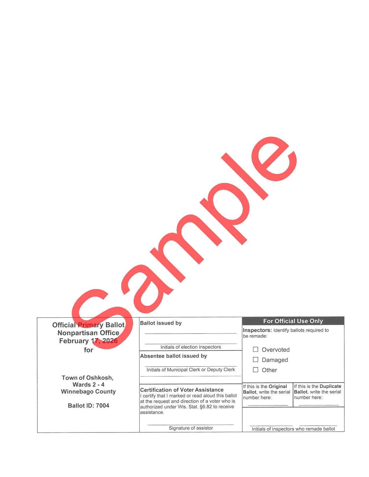 The 2026 February Spring Primary only includes the Oshkosh Area School District board race. It narrows 5 candidates to 4 for placement on the 2026 April Spring Election ballot. If your address is in the Winneconne School District you are not receiving an absentee ballot for this primary election, nor should you come to vote on this Feb. Election Day.